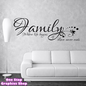 Famille Where Life Begins Autocollant Mural Citation Chambre