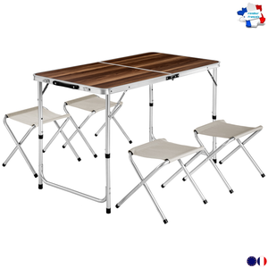 Ensemble Table Pliante Valise Avec 4 Tabourets Camping Aluminium
