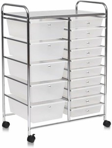 Costway Tour De Rangement A Roulettes Chariot De Rangement Avec 15