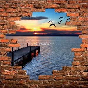 Sticker Trompe L Oeil 3d Mur Dechire Coucher De Soleil Ocean