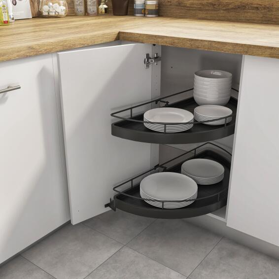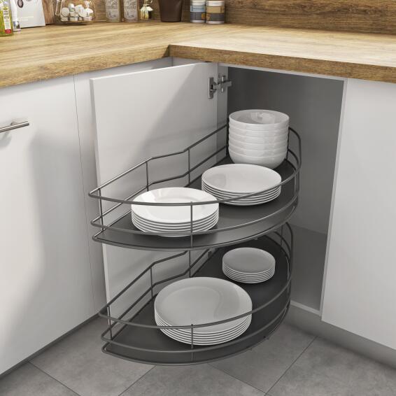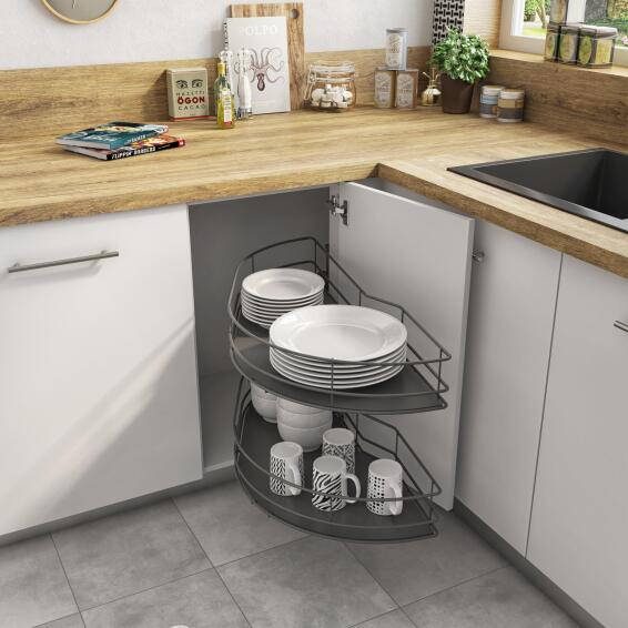 Kitchen Sliding Wire Basket Left Corner Angle Cabinet 2 Level Grey